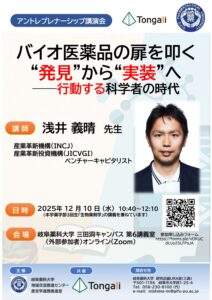【開催概要】岐阜薬科大学アントレプレナーシップ教育講演会